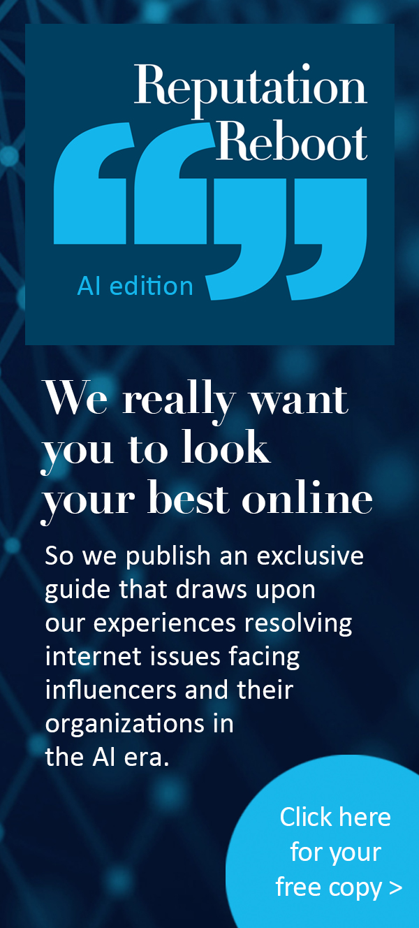 Reputation Communications offers a combination of proactive and reactive strategies for protecting your online image and building your brand. Through our Consults, we illuminate how to face a crisis or other reputation challenge. With our Reboot services, we rebuild a damaged reputation. Our Thrive program scales up your presence.
